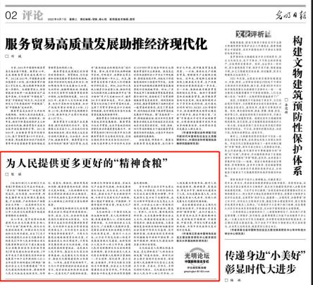 在全面建设社会主义现代化国家新征程中,不断推出更多更好的“精神食粮”,我们才能让人民享有更加充实丰盈的精神生活,更好构筑中国精神、中国价值、中国力量,开创文化事业发展新局面,书写中华民族伟大复兴的历史鸿篇。